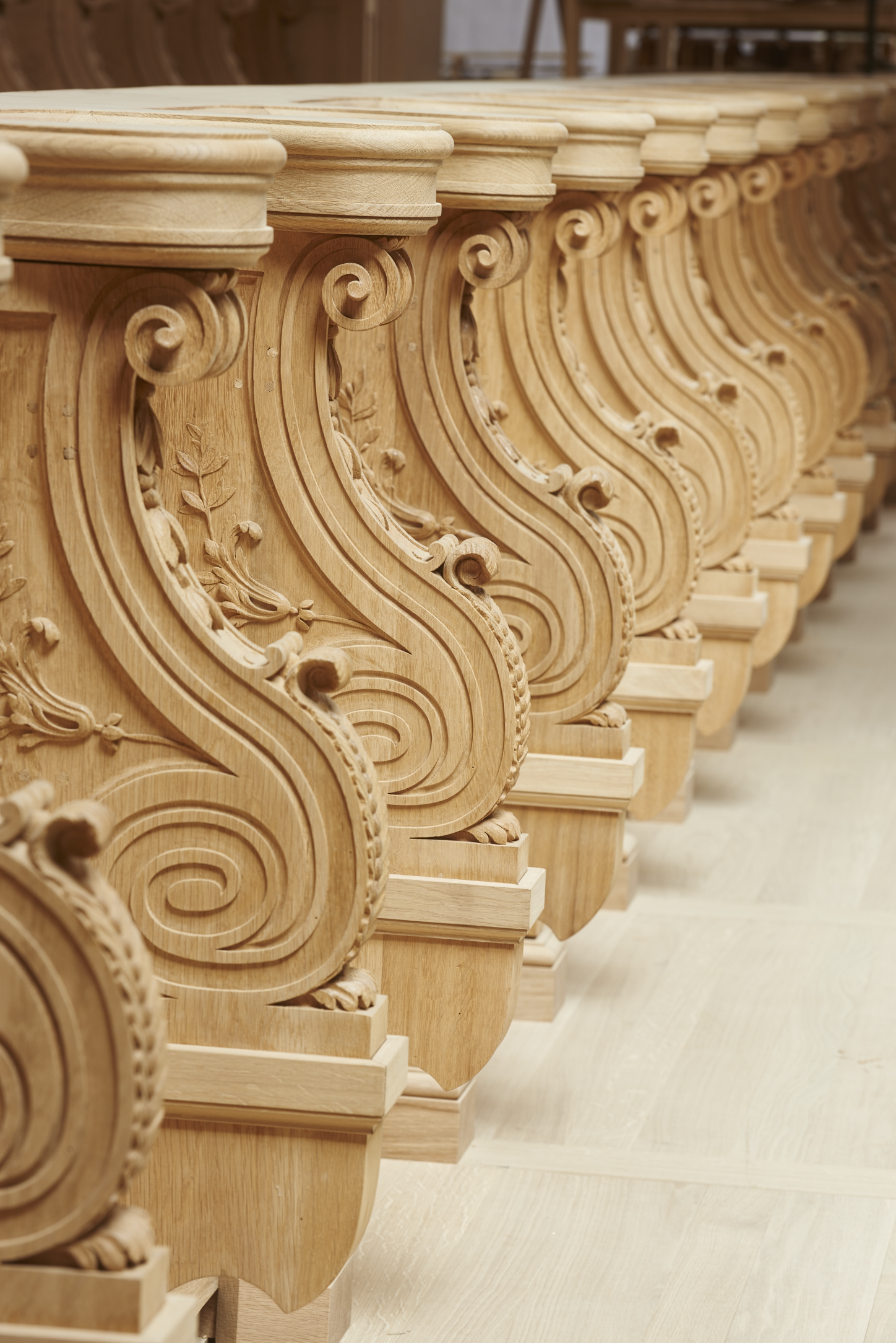 The production workshop employs about 26 people including 19 highly skilled master tradesmen (8 carpenters, 10 cabinetmakers and 1 sculptor), 1 workshop manager, 1 design manager, 2 project managers, 1 draftsman and 1 secretary-accountant. Moreover, it continuously trains 2 apprentices and regularly hosts trainees.