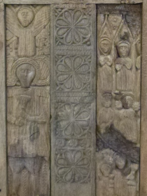 Ce singulier objet mobilier, classé au titre des Monuments Historiques, se compose d’éléments de différentes provenances plusieurs fois remaniés dont un dorsal sculpté en bas-reliefs datant du XVIe siècle.