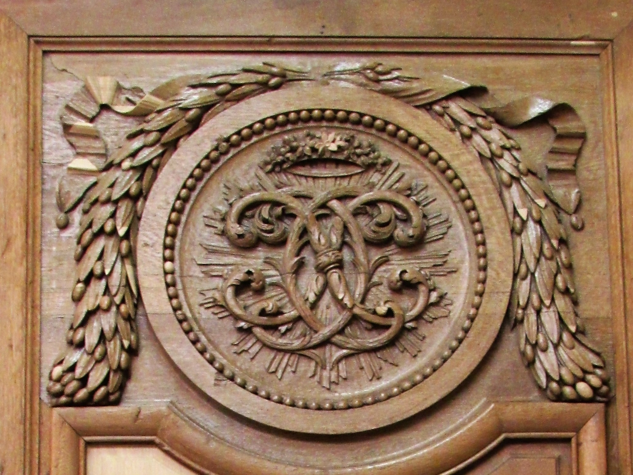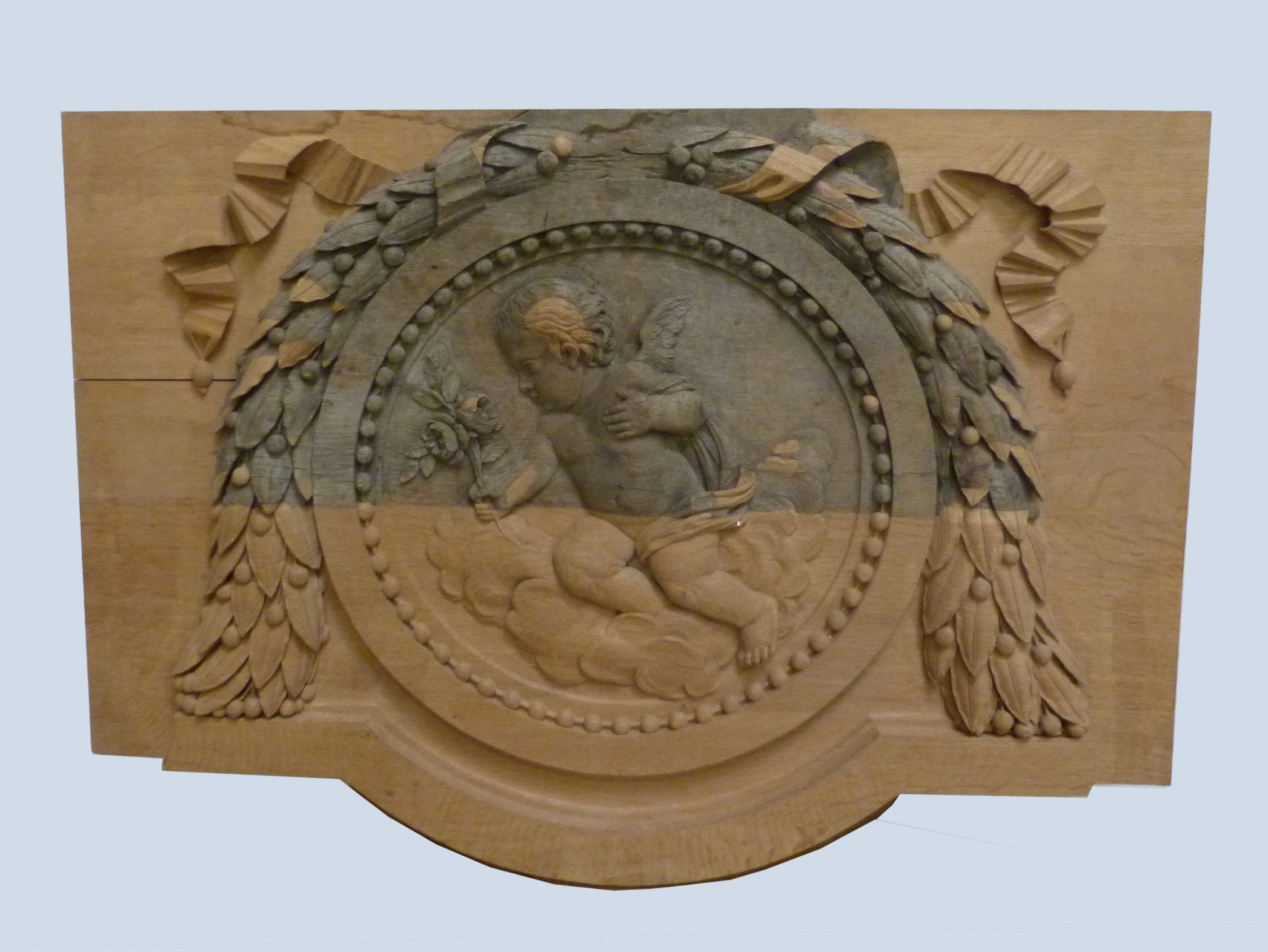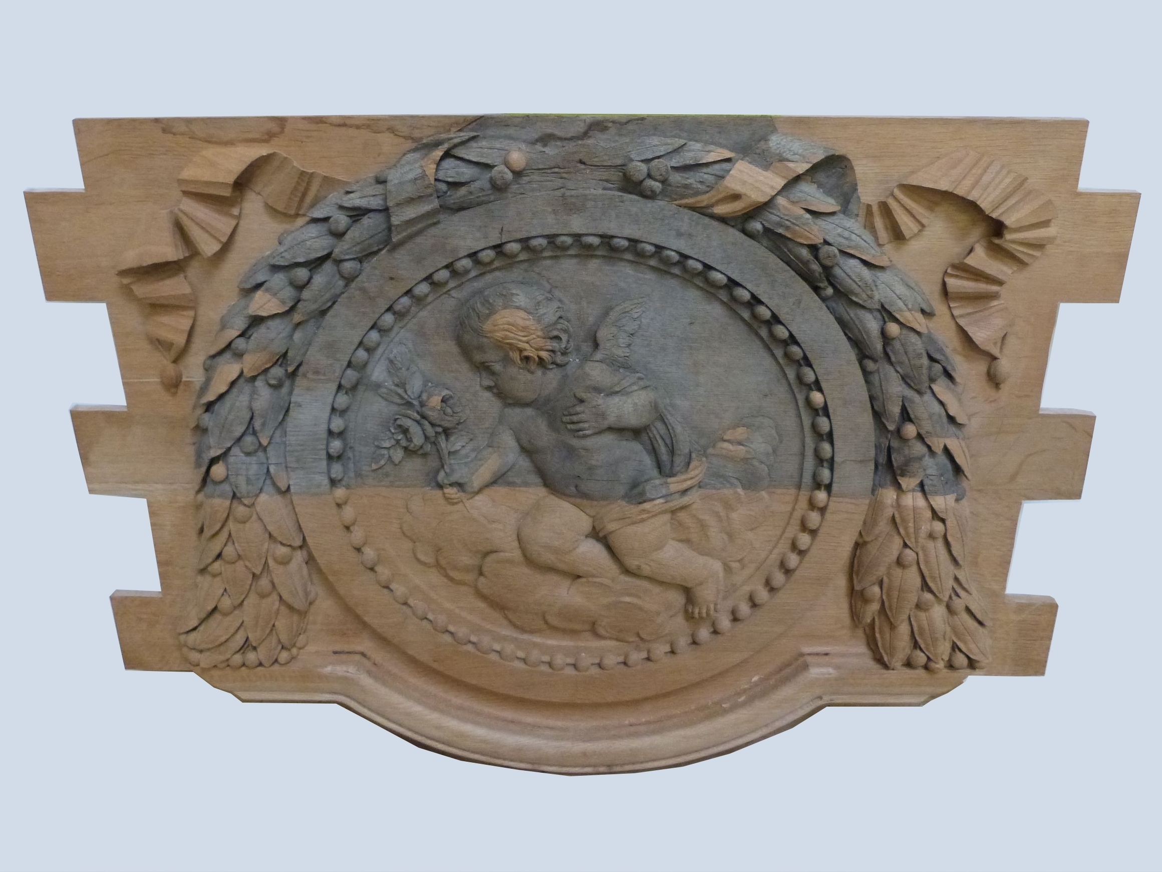 Achèvement des assemblages sur un médaillon restauré dans les années 80