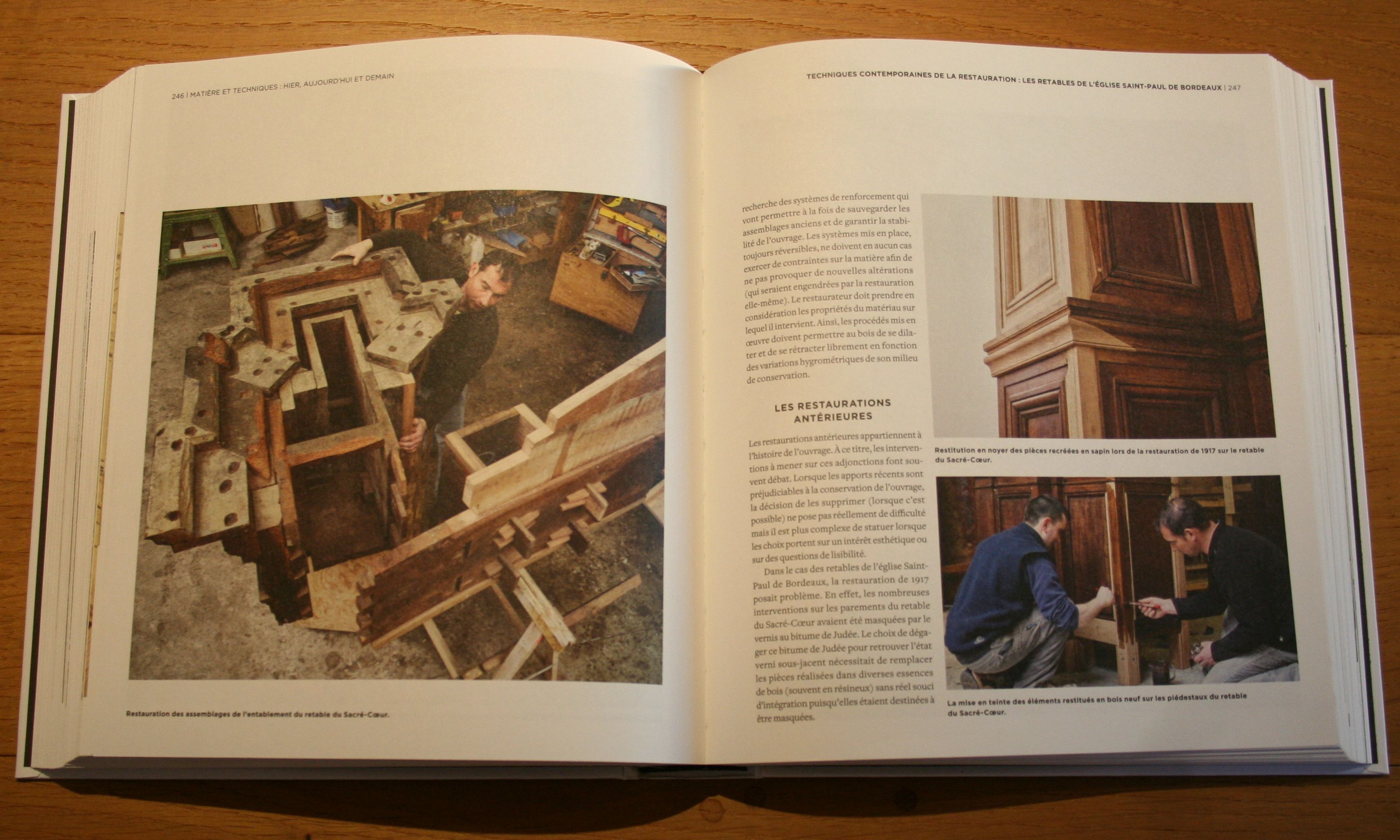 Le premier consacré à la restauration des retables de l’église Saint-Paul permet d’aborder la complexité de la restauration du mobilier classé, alliant techniques traditionnelles de travail du bois et procédés modernes de sauvegarde dans un souci constant de conservation de l’intégrité de l’œuvre. De la dépose à la repose, en passant par le travail d’étude, toutes les étapes de la restauration des retables monumentaux de l’église Saint-Paul sont décrites : dégagement du bitume de Judée, consolidation de bois vermoulus, restitution des lacunes, restauration des assemblages…